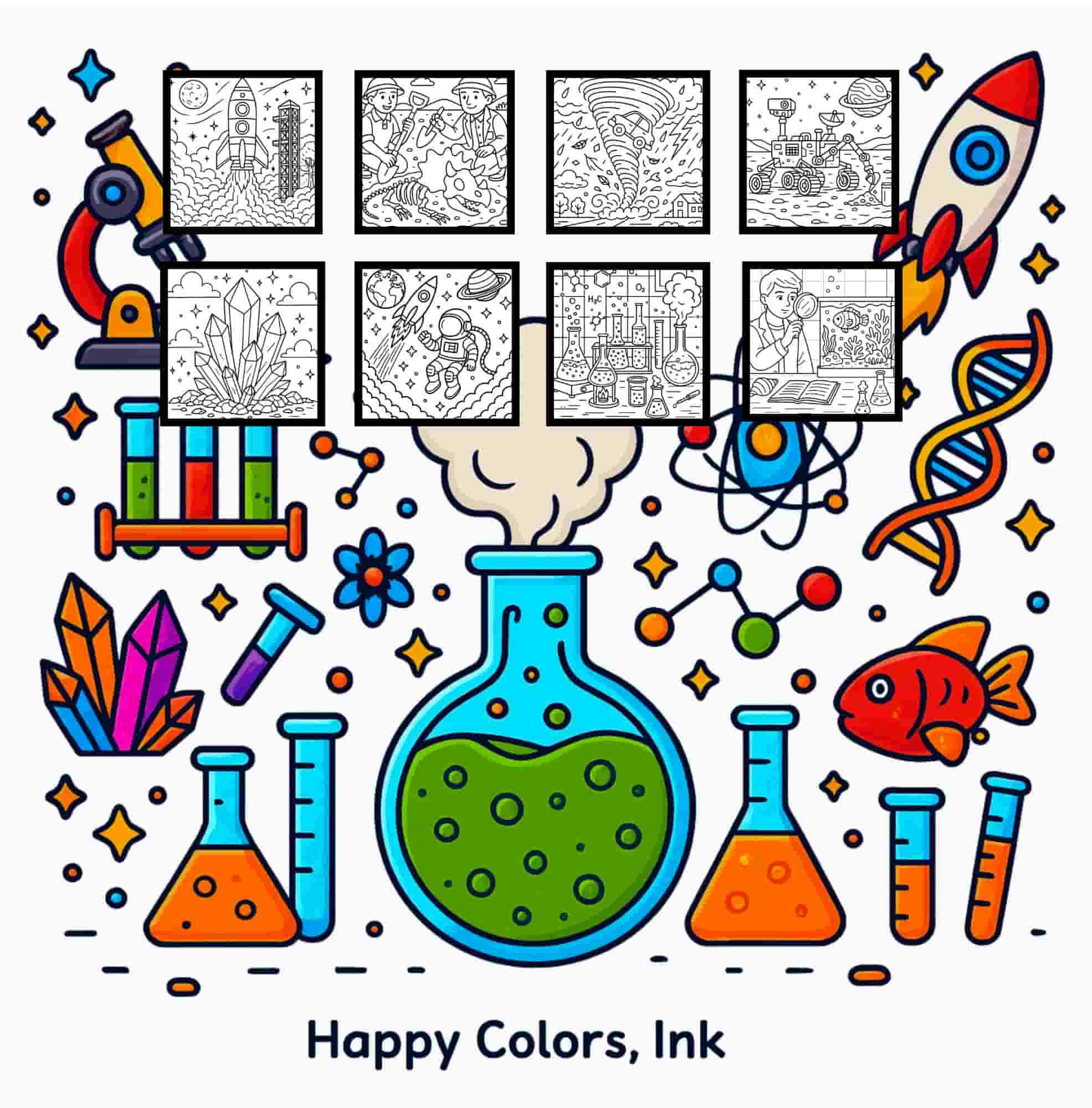 From rockets and planets to crystals, microscopes, and dinosaurs — every page turns learning into an adventure. Inside you’ll find 50 fun Science themed pages with bold clean outline. Perfect for young artists and future scientists.
